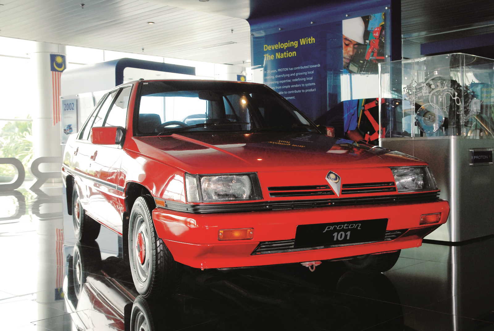 Since this imagery is a national representation of Malaysia, it only made sense for the exported models to sport a slightly different logo. The domestic logo elements were replaced by an alternate take of the 14-yellow pointed star, surrounded by 14 silver five-pointed stars. This move away from its national image for the export models was essential, as non-Malaysians wouldn’t see the significance nor the appropriateness in driving a car that sports another country’s national symbol.